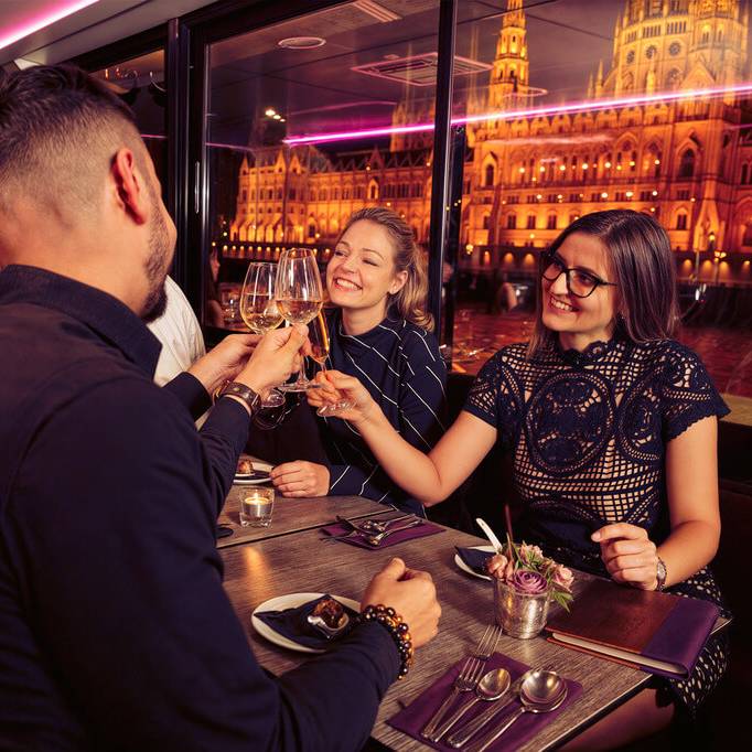 Durante la crociera di 3 ore serviamo una cena di 4 portate per i nostri cari ospiti, mentre loro danno un’occhiata alle parti più belle di Budapest navigando sul Danubio.