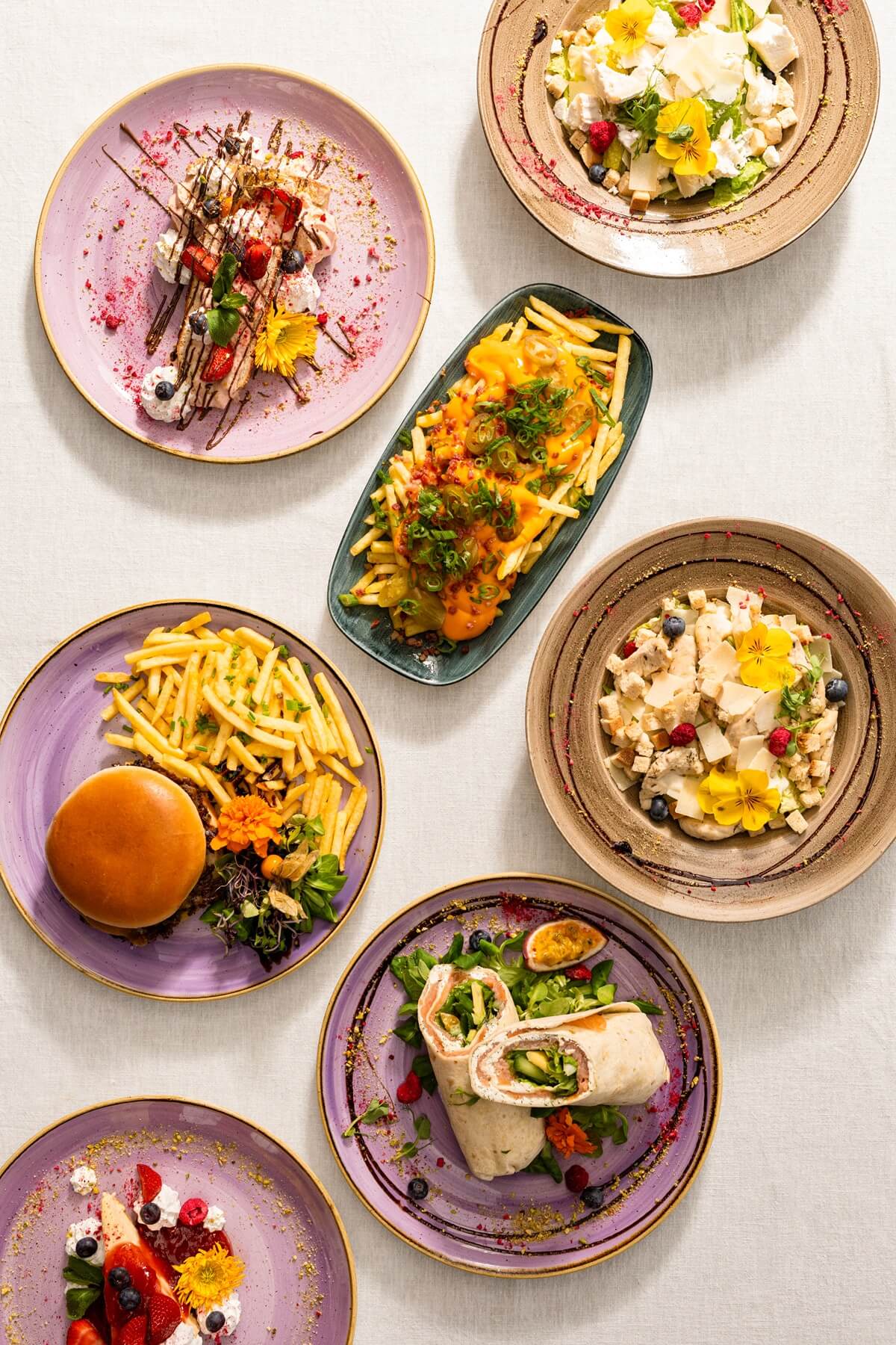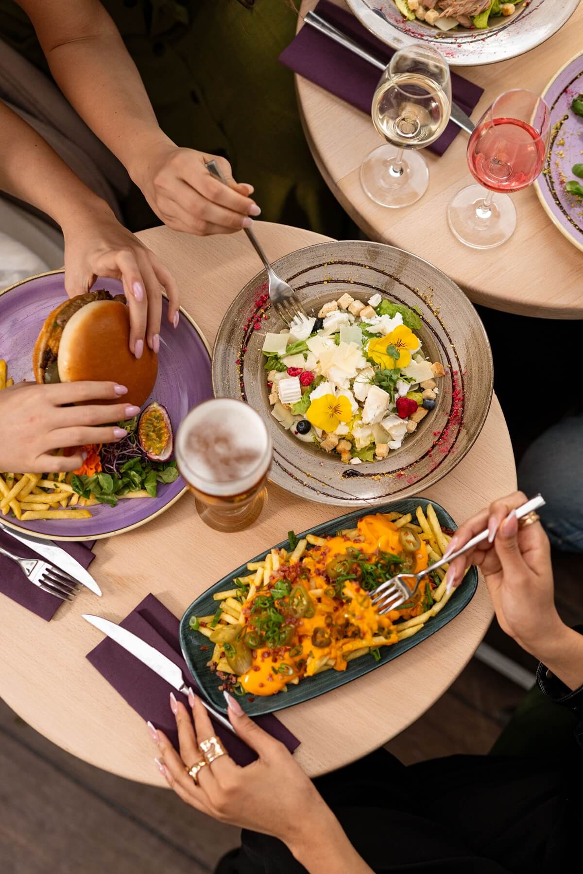 Treat yourself to juicy, perfectly seared smashed burgers, enjoy a generous portion of loaded fries, or choose a fresh and classic Caesar salad – all prepared to satisfy your cravings while you take in the view.